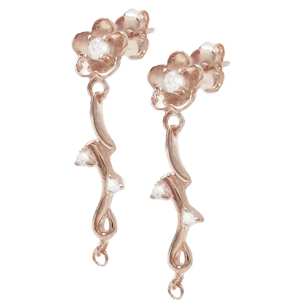 Orecchino Fiore Con Zirconi Argento 925 28x7mm